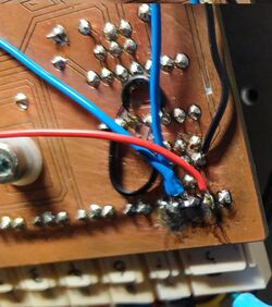 Adapterplatine Kabel neu verlötet da sie sich gelöst haben, ein blaues Kabel gegen orang getauscht zur besseren unterscheidung, Kabel mit Heißkleber fißiert.