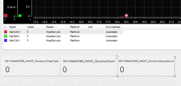 4 Fehler Typ Motoraussetzer im Test bei konstantem Gas angesteuert mit Control Desk Testmessung recorder_mat_012 Stufenweise Erhöhung des Gases über Control Desk Test Hallsensorik. Messsignal wurde erzeugt, durch stufenweise Erhöhung der Geschwindigkeit mit anschließender Rückwerts fahrt, sowie Pause zwischen vor und zurück.