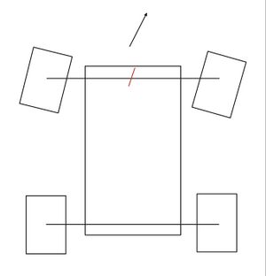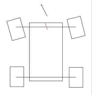 Ein weiterer Punkt der bei einer Inspizierung aufgefallen war ist die mechanische Einstellung der Lenkung am Fahrzeug. Dies bedeutet, dass wenn kein Lenkeingriff an der Fernbedienung erfolgte, die Räder des Fahrzeugs nicht auf Nullstellung (parallel zur Fahrtrichtung) standen. Daraufhin wurde sowohl die Mechanik der Lenkung neu eingestellt, als auch mit einem Trimmrad an der Fernbedienung, die Nullstellung neu kalibriert. Dies führt zu dem gewünschten Ergebnis.