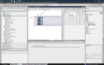 Damit ist die Hardwarekonfiguration (siehe Abb.11) normalerweise abgeschlossen. Allerdings hat sich im Zuge eines Tests mit einer anderen SPS ergeben, dass das Programm zwar die Profibus-Schnittstelle einbindet, nicht aber die konkrete Hardware-Konfiguration des Moduls, welche sich hinter der Schnittstelle verbirgt. Sobald die Profibus-Anbindung besteht, lässt sich auf der rechten Seite eine Auswahl von verschiedenen Modulgrößen und -arten auswählen. Bis jetzt konnte jedoch nicht die richtige gefunden werden.