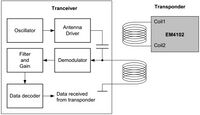 Der Transponder wird mit einem elektromagnetischen Wechselfeld, das vom NXT RFID Sensor aufgegeben wird, ausgelesen. Durch das pulsierende Magnetfeld wird der Transponder aktiviert und erzeugt in der Spule eine kleine Spannung. Diese dient als Stromversorgung für den Transponder. Der Transponder verändert dabei das ausgehende Magnetfeld des Lesegerätes, woraus dieses einmodulierten Antwort im Wechselfeld spezifische Daten des Transponders ermitteln kann. Das bedeutet für den Sensor, dass das Rohsignal zwischen dem Transponder und dem Lesegerät aus einer Spannung besteht.