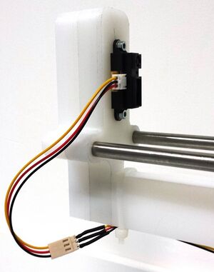 Die Sensoren wurden provisorisch vorn an die Sensorhalter angeschraubt und verdrahtet. Die Verdrahtung wurde vorerst, der Komplexität und Umsetzung halber, durch die Öffnung des Wippenpleuls gelegt. Dieses gilt es in weiteren Bearbeitungen zu optimieren. Für die spätere Optimierung wurde bereits ein CAD-Modell des Sensorhalters inklusive Zeichnungsableitung erstellt und den Projektunterlagen beigefügt. Die neuen Sensorhalter dienen als Gehäuse für die Infrarotsensoren, welche dann an dem Rückteil des Sensorhalters zu befestigen sind. Mithilfe der Sensorumhausung sind die Sensoren vor Beschädigungen, insobesondere bei Reglerversuchen mit der Holzkugel geschützt.