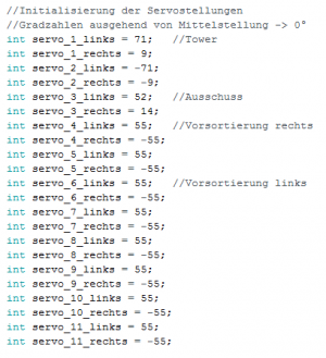 In dem Tower für die Feinsortierung in die rote Einlage, müssen sechs Servos verbaut, die in allen Fällen, bis auf einem Fall, mehrere Klappen auf einer Welle bewegen müssen.