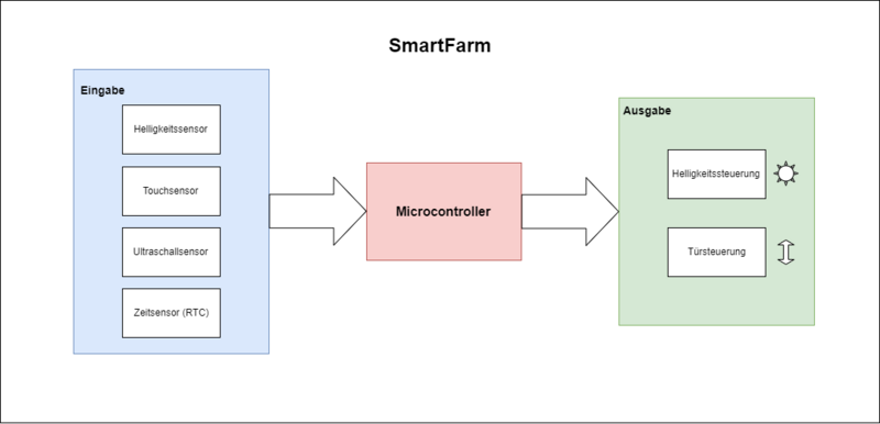 Das Projekt "SmartFarm" verfolgt das Ziel, mit Sensorsystemen und Aktuatoren die Tierhaltung im Einklang mit den Tieren zu erleichtern und zu optimieren. Der Fokus liegt auf der einer Tür- und Helligkeitssteuerung in einem Hühnerstall. Zudem besteht die Möglichkeit, sowohl die Tür als auch die Lampe manuell anzusteuern. Das Projekt "SmartFarm" bietet viele weitere Erweiterungsmöglichkeiten, die im Ausblick eingegangen wird.