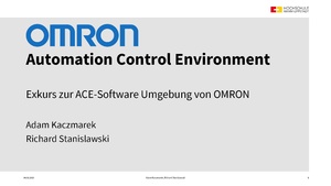 Da der Hersteller des Roboters OMRON ist, wird auch deren Software Entwicklungsumgebung zur Ansteuerung des Roboters genutzt. Die Software, die hier verwendet wurde ist die Automation Control Environment oder auch kurz ACE genannt. Mit dieser Software ist man in der Lage den Roboter per Jog-Control (Hand) oder auch über einen Programm-Code zu steuern. In ACE wurde bereits ein Programm erstellt, welches die Daten dann über eine TCP-IP Verbindung von MATLAB empfängt und aus den Positionskoordinaten Verfahr-Befehle generiert.