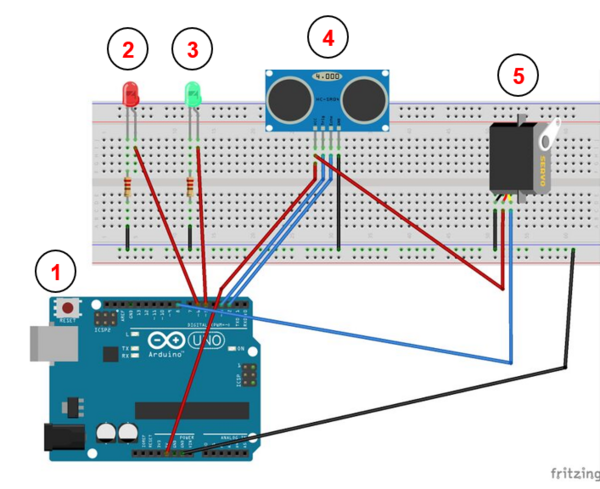| 2 | Die Komponenten (Mülleimer, Ultraschallsensor und Servomotor) werden benötigt. | Hardware | Ken Hilz & Denim Hilz | 05.10.2023 | Offen |