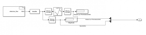 Aufgrund der erhaltenen gefilterten Werte des Matched-Filters aus der Simulink Library ist eine eindeutige Zuordnung des Standortes in Bezug auf die Perimeterschleife nicht gewährleistet. Eine endeutige Zuweisung eines Wertes zum Zustand kann nicht getroffen werden. Außerdem kann anhand dieses Filter ebenfalls nicht der Abstand des Roboters zur Perimeterschleife detektiert werden. Als Lösung für dieses Probelem wird eine eigenständige S-Funcction mit dem vorhandenen Arduino C-Code umgesetzt. Diese Lösung wird im nächsten Kapitel erläutert.