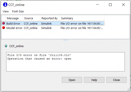 File I/O error on file 'rti1104.tlc' Operation that caused an error: open