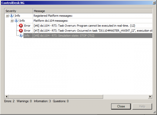 Bei dem Starten einer Messung in ControlDesk auf dem Fahrzeug und dem Laden der zugehörigen sdf-Datei (Variable Description File) sind mehrere Warnungen und Fehlermeldungen aufgetreten, die zufolge hatten, dass nicht das zuletzt kompilierte Modell auf der DS1104 für die gestartete Messung verwendet wurde und somit ein veralteter Stand eingesetzt wurde.