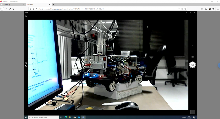 Das verwendete Tool chrome remote desktop ermöglicht sowohl einen Zugriff auf das Fahrzeug selbst, als auch die Beobachtung des Fahrzeuges über einen weiteren Labor-PC und eine Webcam.