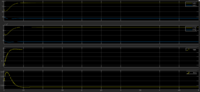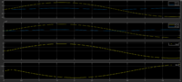 Das letzte Modul Auswertung hat folgende Eingänge:Modellgierrate, Modellquerbeschleunigung, Kräfte im Schwerpunkt in x Richtung, Kräfte im Schwerpunkt in y Richtung, Schwimmwinkel und der Ausgang ist die Auswertung über die Zeit. Die Aufgabe ist, das Aufzeigen der Modellgierrate, Modellquerbeschleunigung, Schräglaufwinkel und Schwimmwinkel in 4 von übereinander dargestellten Diagrammen.